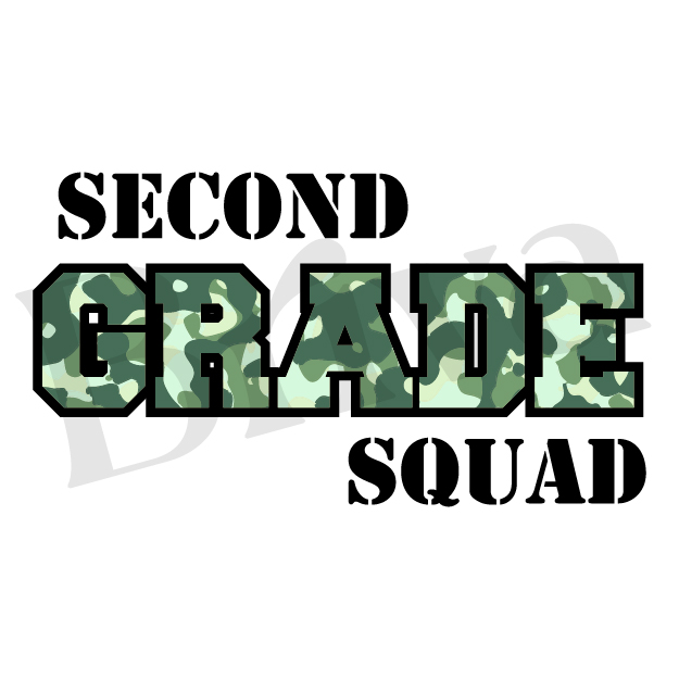 2nd Grade Squad Camo PNG Design, large image for easy resizing. Perfect for shirts, mugs, tumblers, and more!